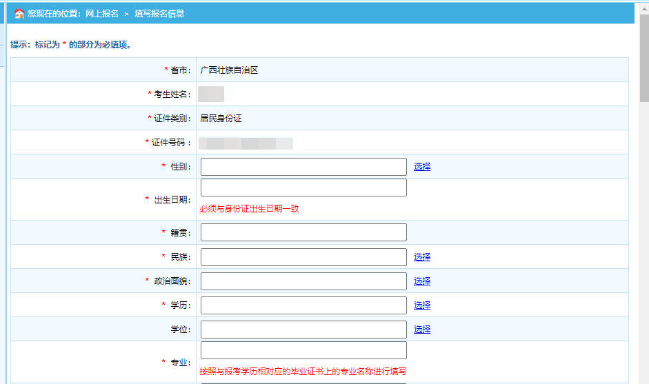 第二步:點(diǎn)擊“注冊(cè)”,進(jìn)入考生注冊(cè)頁(yè)面,考生注冊(cè)填寫個(gè)人信息