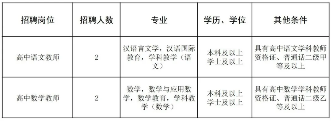 根據(jù)發(fā)展需要,學校擬招聘高中語文、高中數(shù)學頂崗教師共4人,具體招聘信息如下: