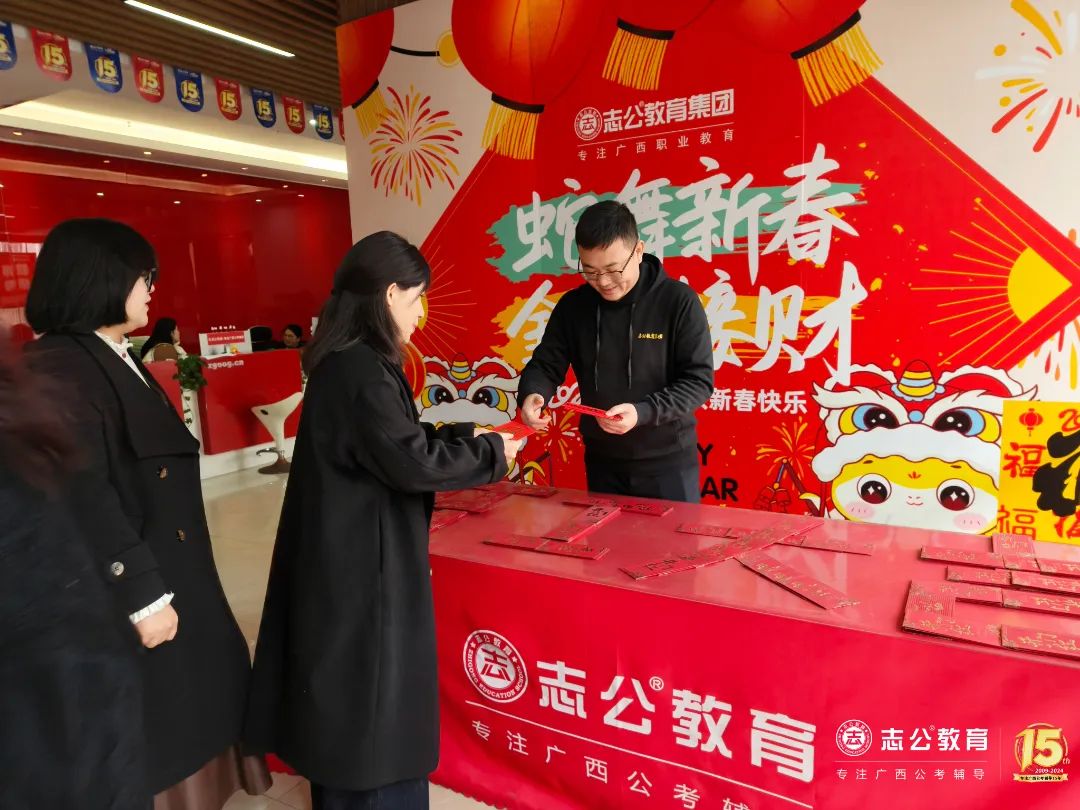 春節(jié)的喜慶氣氛猶在,而我們的心中早已裝滿了對(duì)未來(lái)的憧憬和期待。在未來(lái)的日子里,志公教育集團(tuán)將一如既往地秉承12條企業(yè)核心價(jià)值觀,為廣西公職教育提供良好的產(chǎn)品和服務(wù),實(shí)現(xiàn)企業(yè)使命——幫助人才實(shí)現(xiàn)更高質(zhì)量的就業(yè),為員工創(chuàng)造最具幸福感的企業(yè),用教育成就夢(mèng)想!相信在全體員工的共同努力下,志公教育一定能夠開(kāi)創(chuàng)更加輝煌的未來(lái)yes