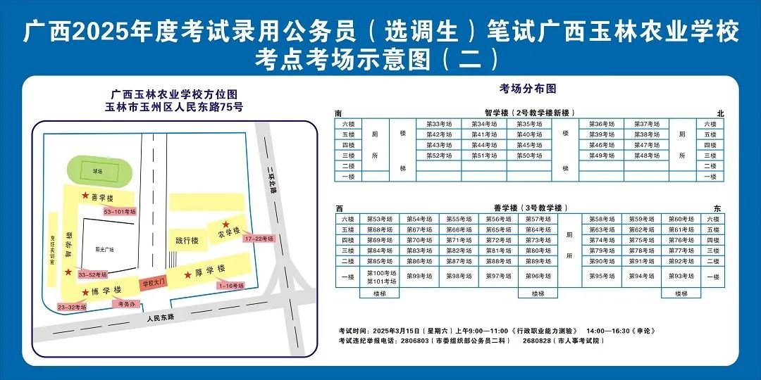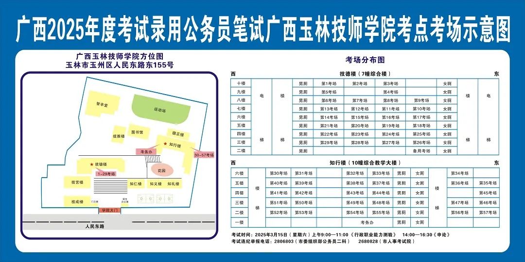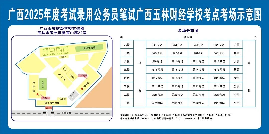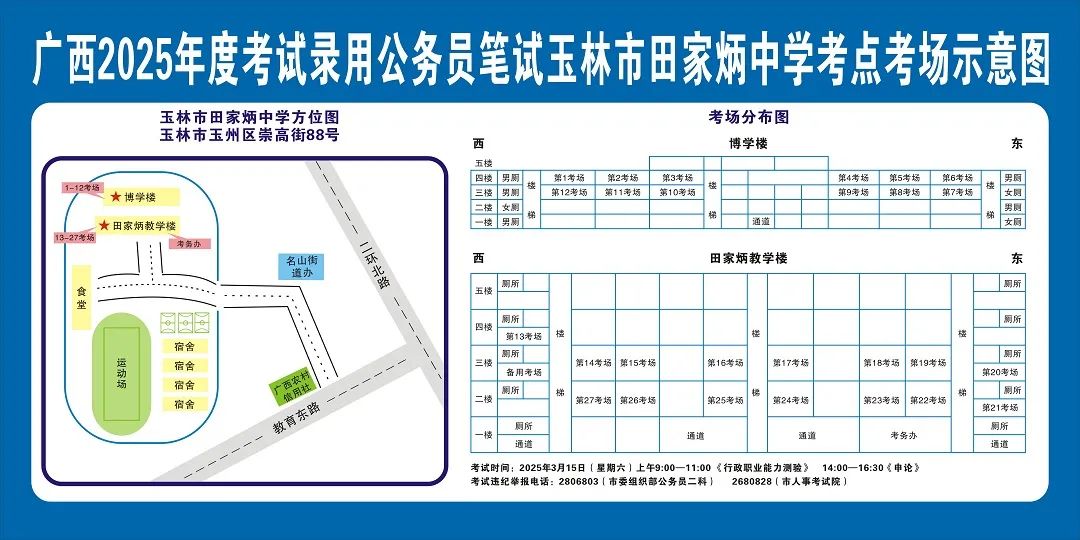 除考試當(dāng)天考生可以進(jìn)入考點(diǎn)外,考生不得提前進(jìn)入考點(diǎn)查看考場(學(xué)校將在大門處擺放考場分布示意圖),玉林考區(qū)11個(gè)考點(diǎn)的考場布置情況如下: