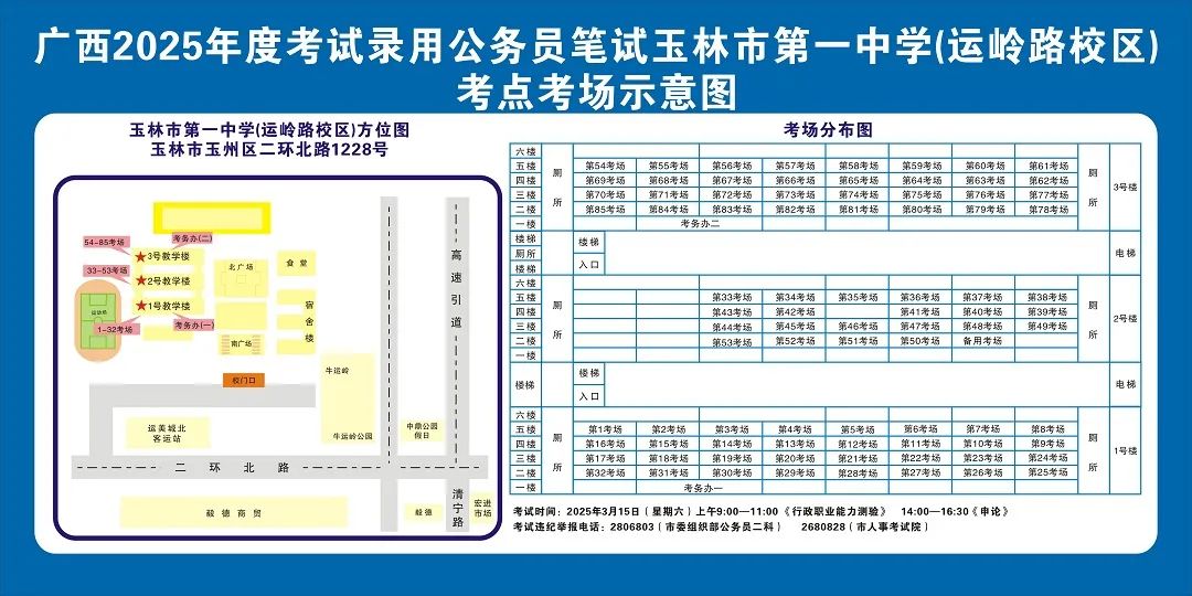 玉林市第一中學(xué)(運(yùn)嶺路校區(qū))考點(diǎn)11:00-12:00,16:30-17:30 在考點(diǎn)安排公交車和值勤人員,負(fù)責(zé)將考生接送到玉林汽車總站。