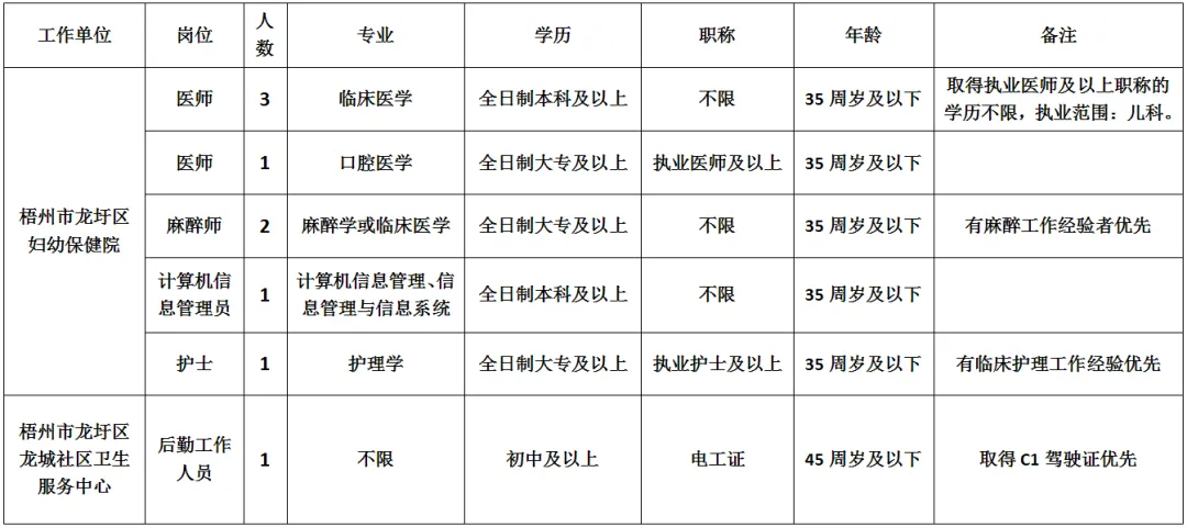 根據(jù)業(yè)務(wù)發(fā)展需要,梧州市龍圩區(qū)婦幼保健院現(xiàn)面向社會(huì)公開(kāi)招聘專(zhuān)業(yè)技術(shù)人員,有關(guān)事項(xiàng)公告如下: