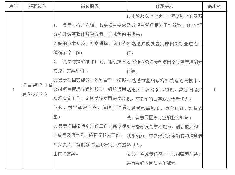 百色數(shù)字科技信息有限公司是中國(guó)—東盟信息港股份有限公司的控制子公司,是經(jīng)百色市國(guó)資委批準(zhǔn)成立的數(shù)字科技公司,定位為百色市重要的數(shù)字經(jīng)濟(jì)企業(yè),公司立足百色,面向全市,常駐辦公地址在百色市政務(wù)服務(wù)中心三樓。公司主營(yíng)業(yè)務(wù)涵蓋產(chǎn)業(yè)互聯(lián)網(wǎng)、政企數(shù)字化和信創(chuàng)安全服務(wù)三大領(lǐng)域,根據(jù)公司發(fā)展需要,現(xiàn)面向社會(huì)公開招聘項(xiàng)目經(jīng)理崗位人員,具體公告如下: