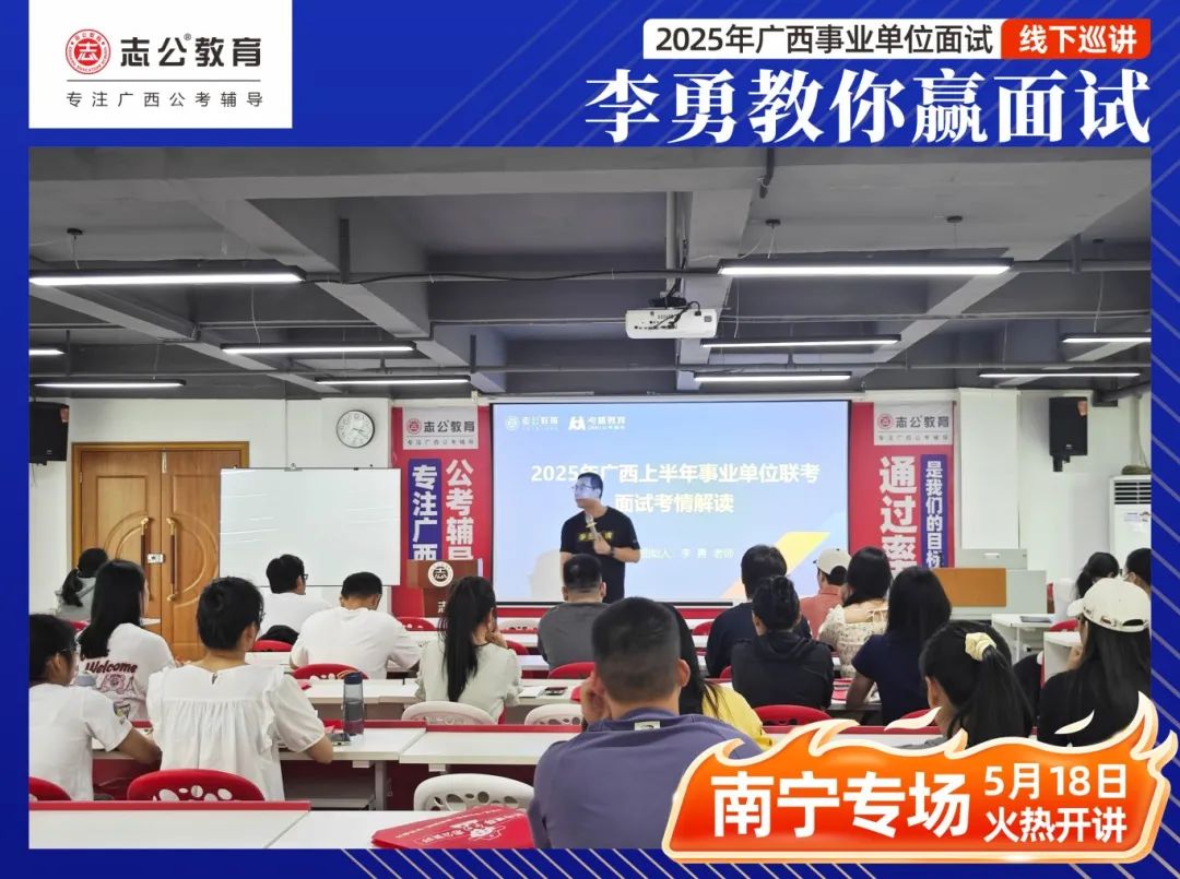 文章來(lái)源:李勇教你贏面試!2025廣西事業(yè)單位面試線(xiàn)下巡講南寧專(zhuān)場(chǎng)今天等你來(lái)!