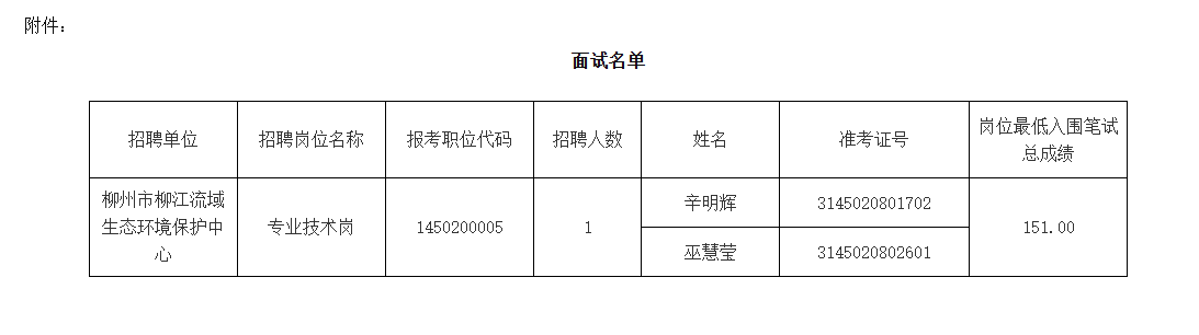 根據(jù)《柳州市2025年度上半年事業(yè)單位公開考試招聘工作人員公告》、《關(guān)于印發(fā)〈廣西壯族自治區(qū)事業(yè)單位公開招聘工作人員面試工作規(guī)則(試行)〉的通知》(桂人社發(fā)〔2012〕79號(hào))的規(guī)定,2025年柳州市生態(tài)環(huán)境局?jǐn)M組織所屬事業(yè)單位公開考試招聘工作人員面試,現(xiàn)將相關(guān)事宜公告如下: