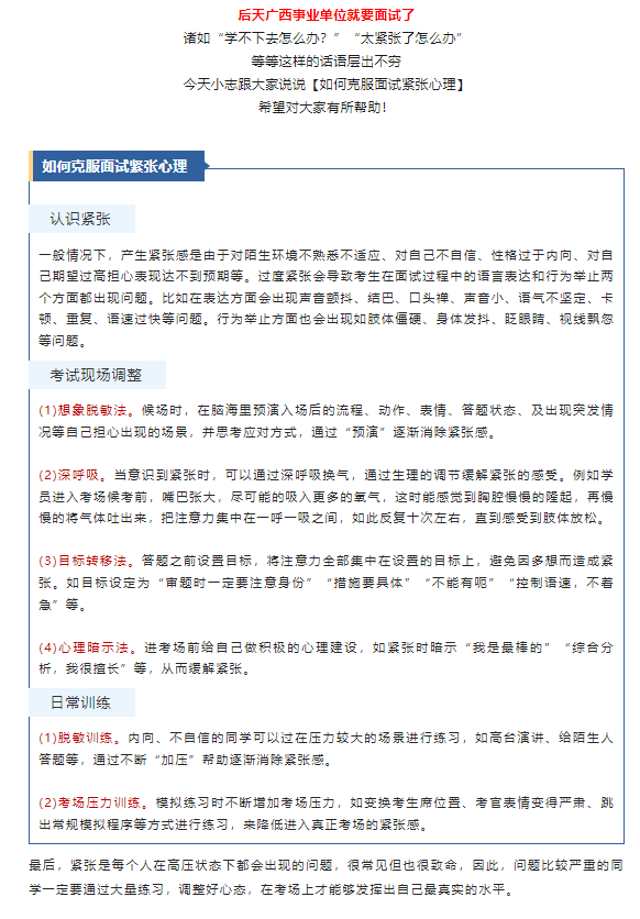 后天面試!快看25年廣西事業(yè)單位面試考場示意圖、克服面試緊張心理方法!