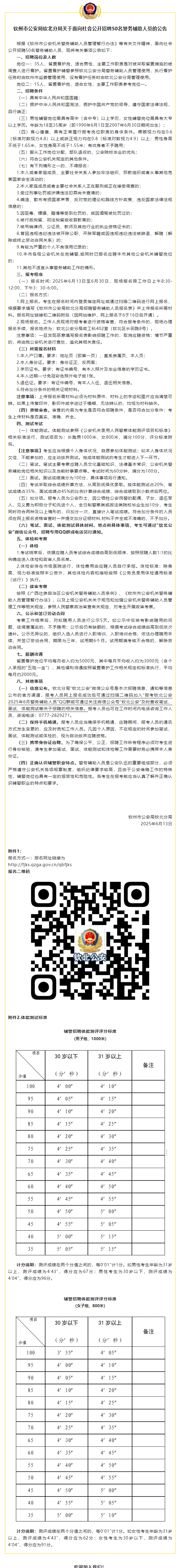 欽州市公安局欽北分局關(guān)于面向社會(huì)公開(kāi)招聘50名警務(wù)輔助人員的公告