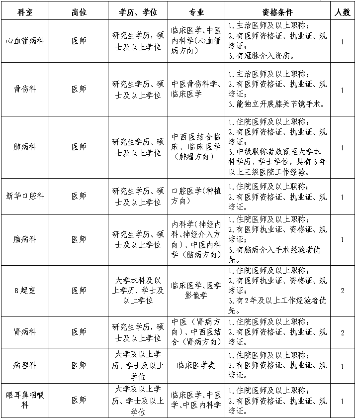 根據(jù)醫(yī)院高質(zhì)量發(fā)展需要,我院誠聘衛(wèi)生醫(yī)療相關(guān)專業(yè)領(lǐng)域的人才,歡迎投簡歷應(yīng)聘。