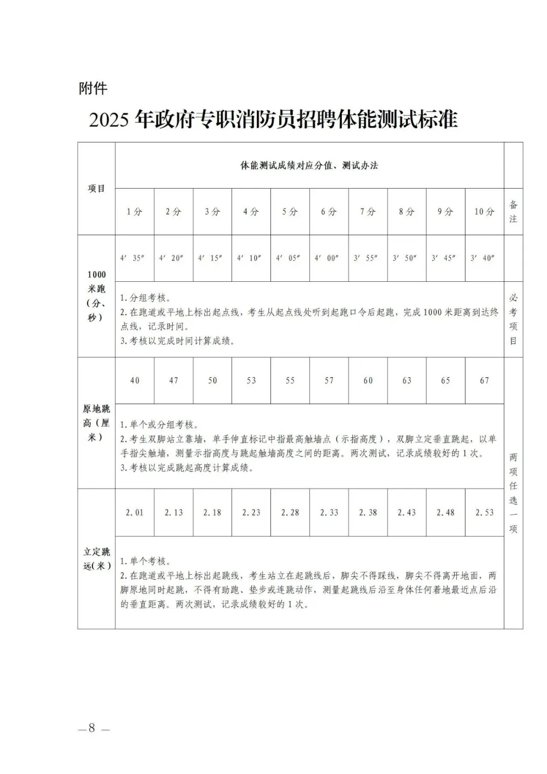 注意事項(xiàng):應(yīng)聘人員須參加體能測試,并當(dāng)場簽訂《天等縣消防救援大隊(duì)政府專職消防員招聘體能和崗位適應(yīng)性測試招聘對象承諾書》,體能測試有兩項(xiàng)及兩項(xiàng)以上不得分的視為不合格(標(biāo)準(zhǔn)參照附件)。未按時(shí)參加或因身體原因無法測試者,視為自動放棄。