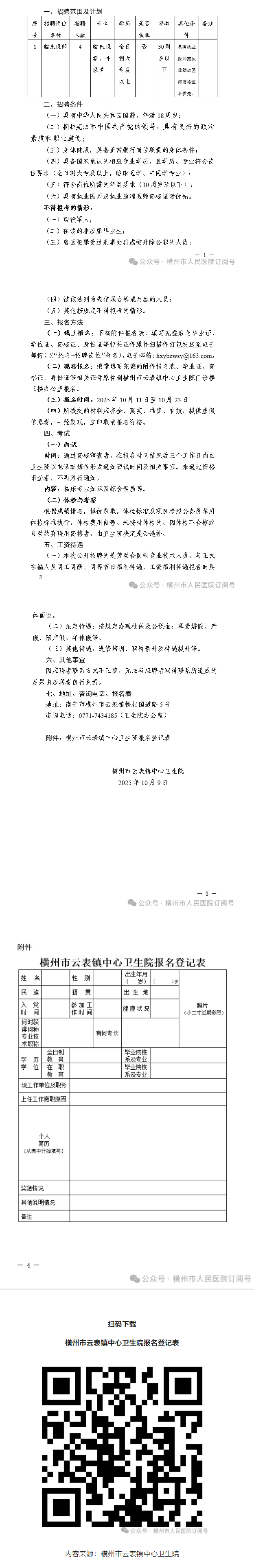 2025年橫州市云表鎮(zhèn)中心衛(wèi)生院公開(kāi)招聘編外衛(wèi)生專(zhuān)業(yè)技術(shù)人員的公告