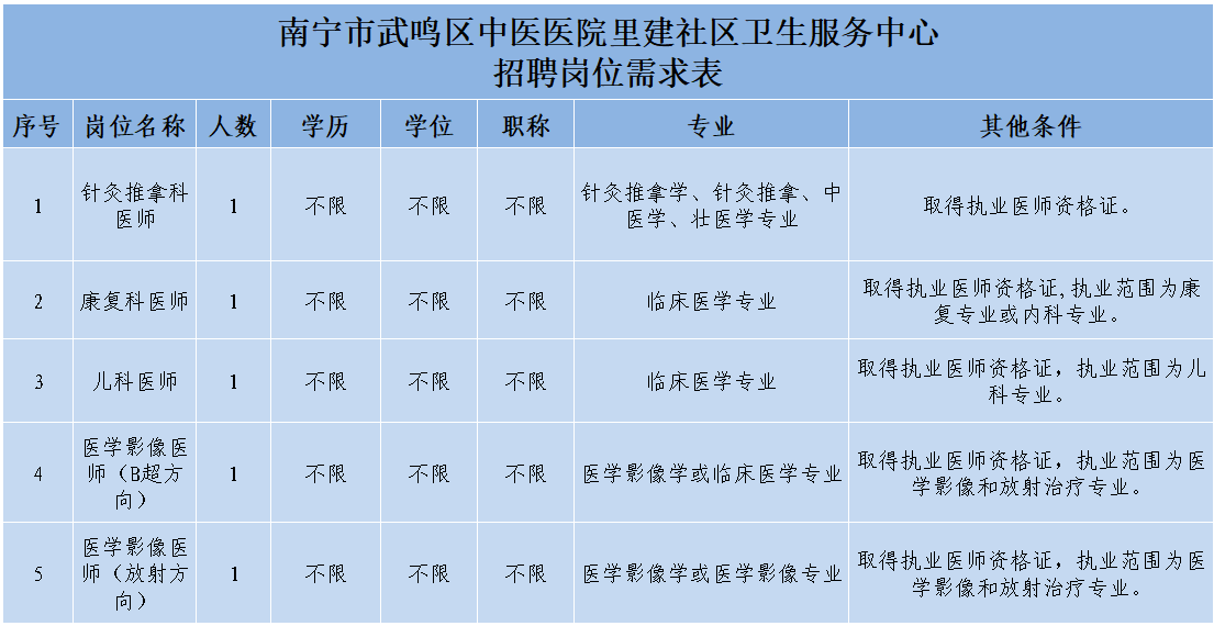 原文標(biāo)題:2025年南寧市武鳴區(qū)里建社區(qū)衛(wèi)生服務(wù)中心招聘啟事