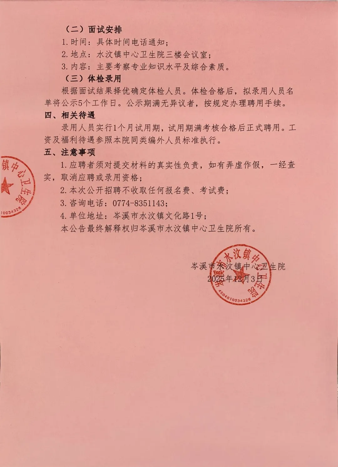 原文標題:2025年梧州岑溪市水汶鎮(zhèn)中心衛(wèi)生院招聘護士和康復技師